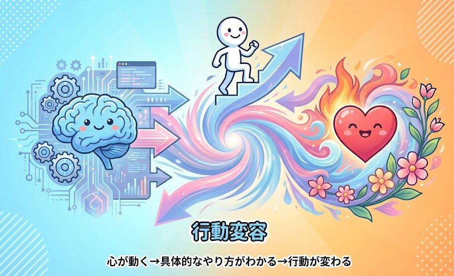 「心が動く→具体的なやり方がわかる」なので、受講者の行動が変わるのです。